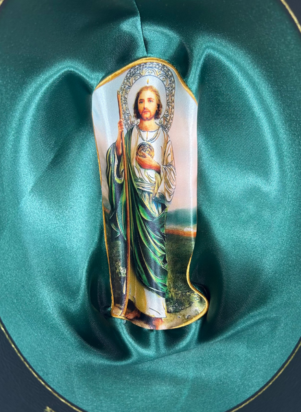 100x Sombrero O riginal / Cowboy Hat with Black Aveztruz toquilla. San Judas satin liner interior or SB LV Monogram sombrero only available at Sombrero Boyz. LIMITED EDITION.
